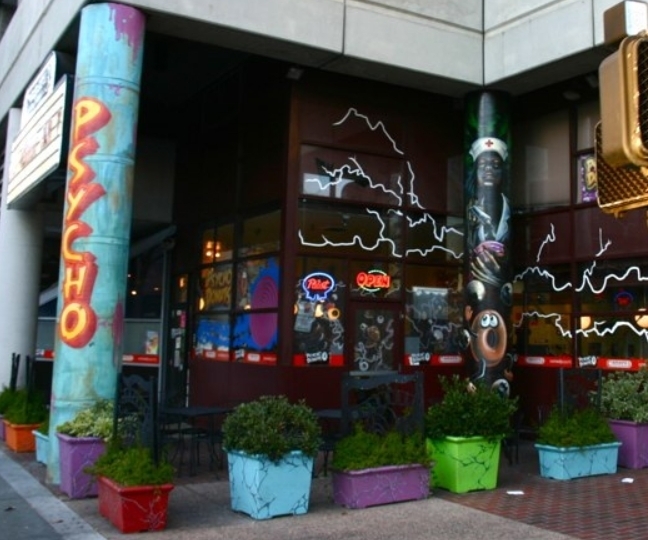 Obsessed with Donuts? If not, visiting this shop will get you there – so don’t enter if you don’t want to risk an obsession. Psycho Donuts has got every topping you can think of, every donut flavour you want and lots of creative designs on the menu. The shop also doubles as an art gallery with all the quirky artwork on display being for sale. The only thing I do not understand is the German chocolate cake they advertise …. last time I checked we were known for Schwarzwaelder Kirschtorte und Apfelstrudel and not chocolate cake with caramel and coconut ….