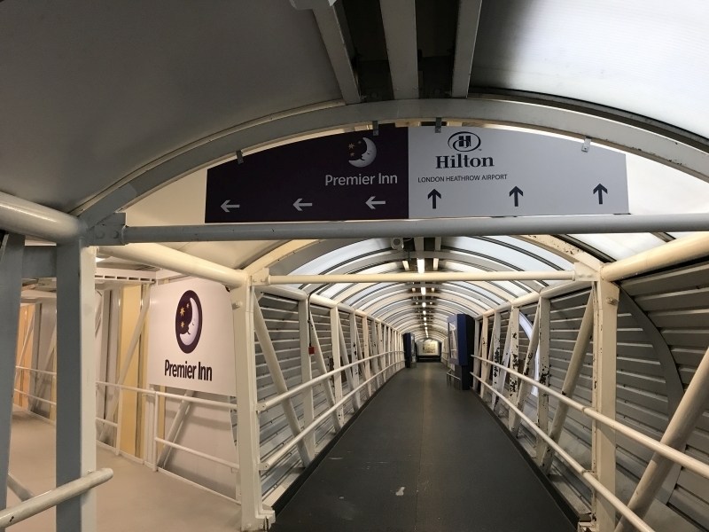 Once I got to Heathrow Terminal 4 it was fairly easy to find the Premier Inn hotel. With luggage it’s best to get the lift up to the departure area, then turn right and keep walking until you get to the walkway which leads to the Hilton Terminal 4 and the Premier Inn.