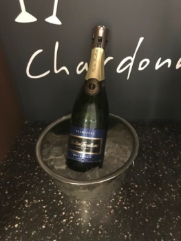 There were only two types of white wine – Pinot Grigio or a Chardonnay (American). The Nicolas Feuillatte champagne was served by the staff. Dawn didn’t look at the red wines, but there were two choices here too.