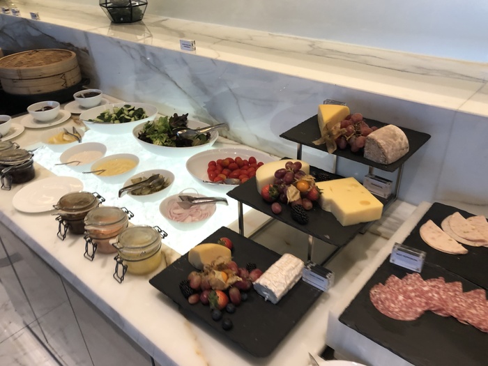Also on this floor is CurATE, the casual buffet dining experience where breakfast is served but which also has lunch and dinner options. The buffet is gigantic, and caters to Asian, European and Middle Eastern tastes. Here are some photos from the breakfast service stations although this is by no means exhaustive. There were cheeses, meats and gravalax salmon and other smoked fish: