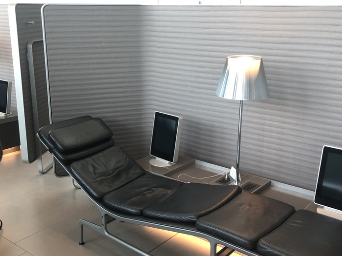 To the left of this area is another separate mini-lounge with another bar. The seats here are totally different, each with an in-built iPad.