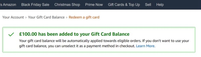 Step 6:  Click here to go to the page of the amazon.co.uk where you redeem electronic gift cards
