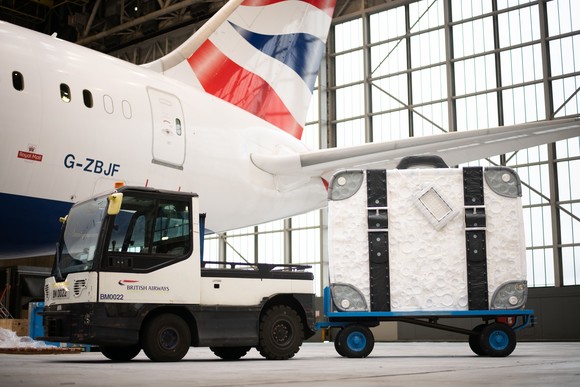 Here is a suitcase made from recycled plastics that BA commissioned to mark the announcement: