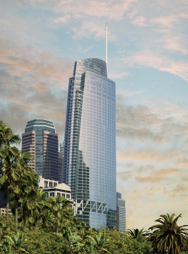 The hotel building is relatively new (it opened in mid 2017) and is an impressive steel and glass sail-shaped construction. 73 stories high, it has some of the best views of the city and out to the Hollywood Hills and beyond.
