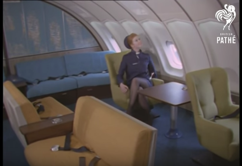 It got a lot bigger by the time the current British Airways 747-400 was introduced, and the 747-8i (currently only flown by Lufthansa in Europe) is even bigger. Here are some screenshots from the British Pathe video: