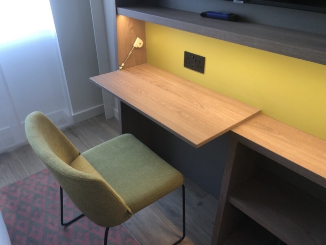 Thankfully, Hilton has not gone down the – perhaps now abandoned – industry trend of dumping desks. Yes, it saves space, but it also annoys your customers. Instead you have this: